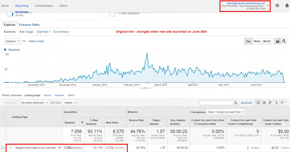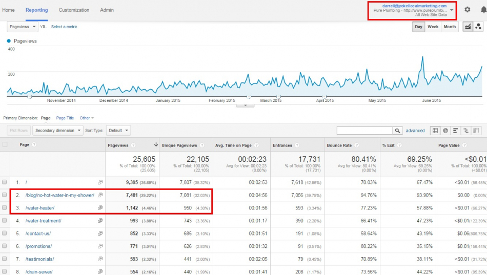 It took about 45-60 days for it to start ranking and is now sending about 700 visitors per month to the company's site, of which about 1.5-2.0% are in the area they work in, but they are highly targeted visitors and their phone is ringing. Their water heater business has since blown up and they now rank decently across the board for their main water heater repair phrases in their area.