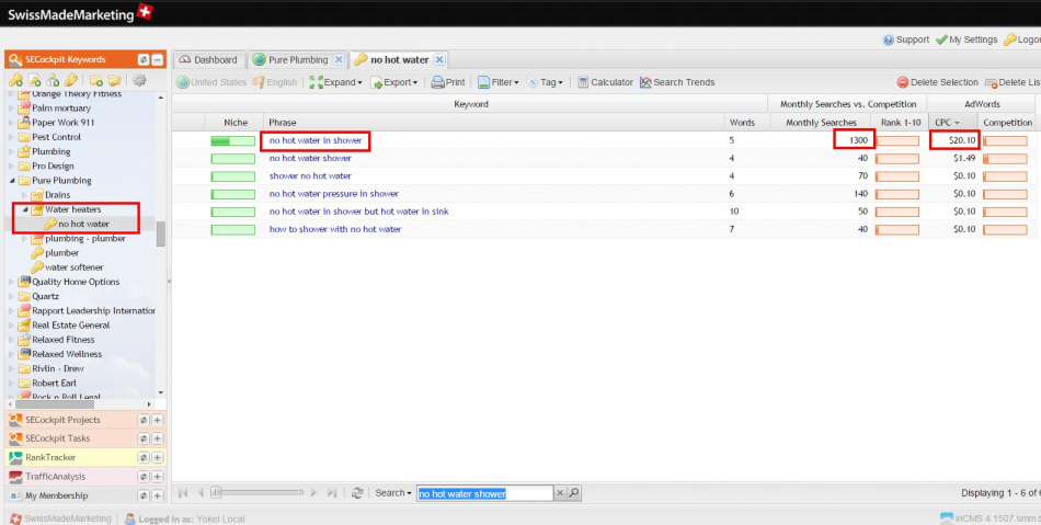 In this example, the company specializes in water heater repair so naturally they wanted to rank for this. Afer doing what we call "pain finder research," we used SECockpit to find the long tail phrase "no hot water in shower" which is a pain/problem directly related to the water heater being out but someone may not know that the water heater was the issue. It's a "search query that precedes the sale." We focus on getting our clients to show up higher in the decision funnel (even if the decision process may be short). We created a piece of content (not even a stellar piece) around this search query which receives an around 1300 searches per mo. in the US (all of which is not relevant to our clients' location but it all the traffic helps with ranking and acquiring backlinks). Our post usually ranks around 3 or 4 for this phrase as well as dozen's of other variations of this search query as of the date of submitting this.