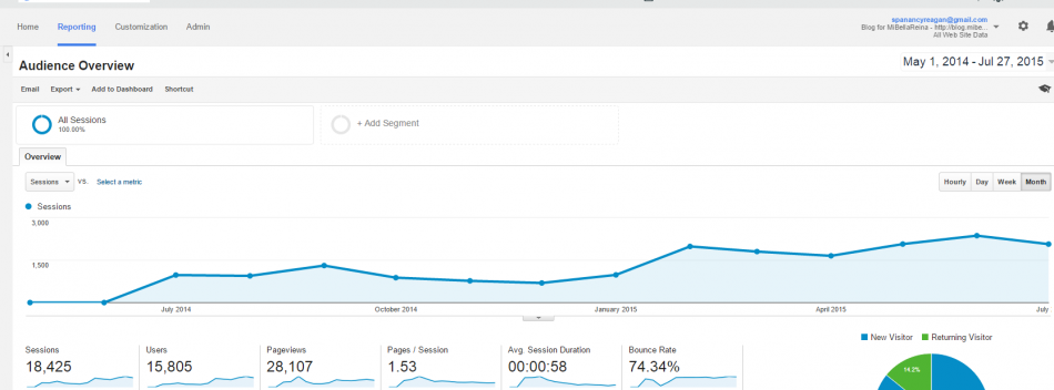 Regarding higher quality visitors...we have viewed more pages per visit. Our rankings for Delray Beach Spa are now #1. Our bounces have declined and the length of sessions has increased: